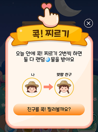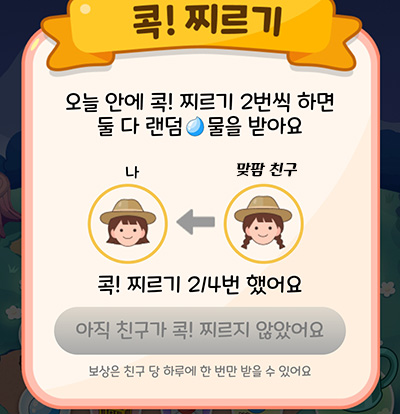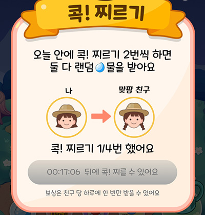 같은 친구랑은 하루에 한번 콕!찌르기 할 수 있습니다.