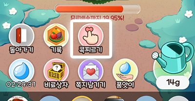 콕! 지르기는 오늘 안에 콕! 찌르기 2번씩 하면 둘 다 랜덤 물을 받습니다.