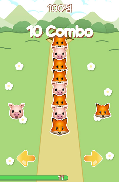 아래쪽 좌우 동물 모습을 보고, 같은 쪽으로 화살표를 누르는 게임입니다.